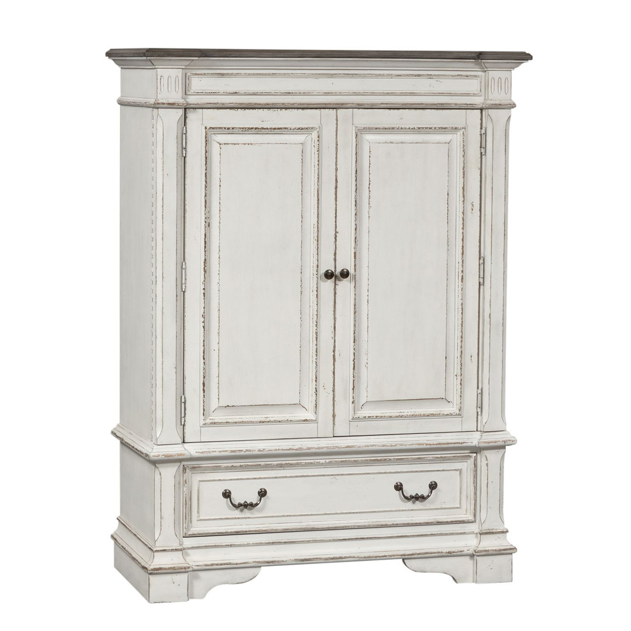 A blend of traditional eupoean design influences creates a truly unique style for any living space. Warm antique finishes and artistic distressing makes this an item to be passed to generations.