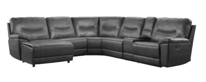 With a configuration options that allow for placement that is perfect for your space, the Ballard Collection will be a welcome addition to your living room. Gray textured faux leather covers the collection, resulting in a pleasurable seating experience. Contrast stitching furthers the transitional look. Bookending this substantially sized seating group are the left-side push back chaise and right-side reclining chair. An armless chair, console unit, corner seat, and armless reclining chair make up the middle part of this sectional offering.