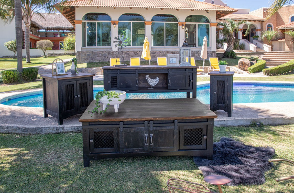 5. Side doors feature metal mesh on panels add rustic industrial appeal.