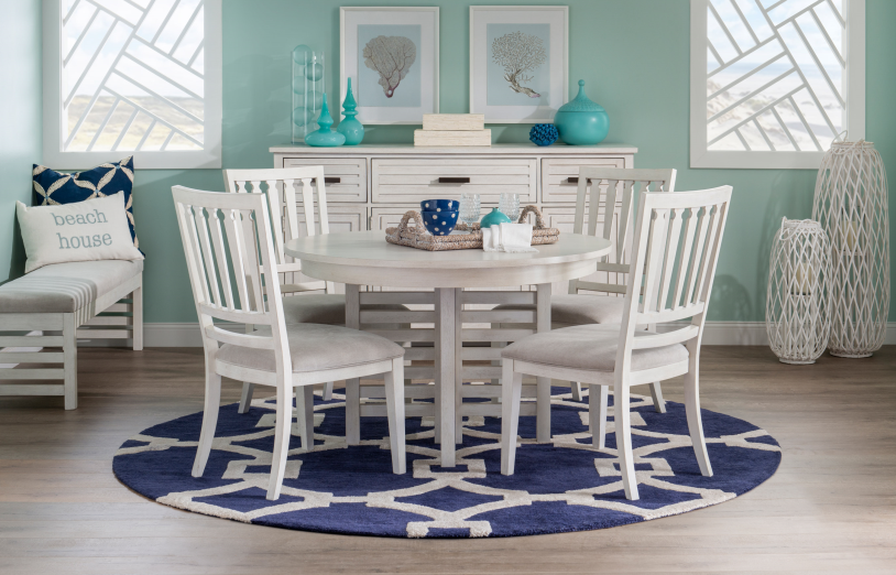 Includes (1) Round Table, (4) Side Chairs (Slat Back or Ladder Back)
