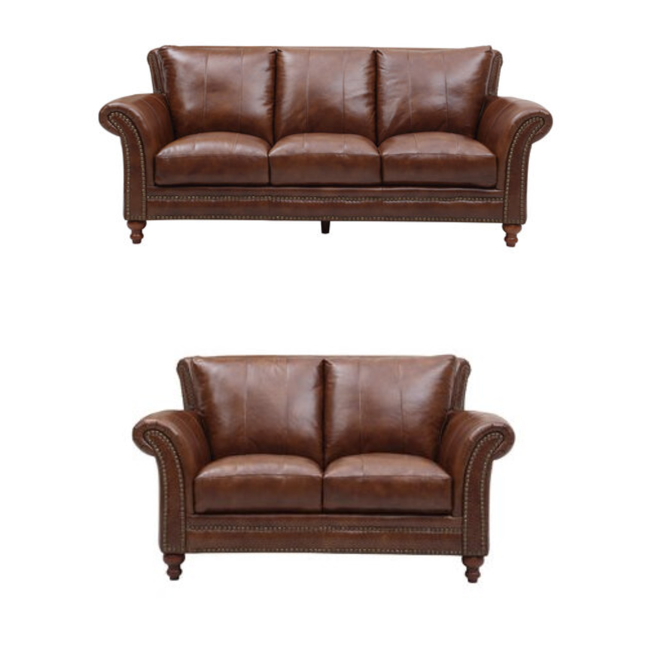 The Oak Haven brings authenticity mixed with elegance. This beautiful piece of 100% Leather furniture is the focal point of any living space. The expert craftsmanship of the beautifully sculpted rolled arms, detailed nail-head trim, ornate wooden feet, and long lasting comfort make the Oak Haven a one of a kind silhouette.