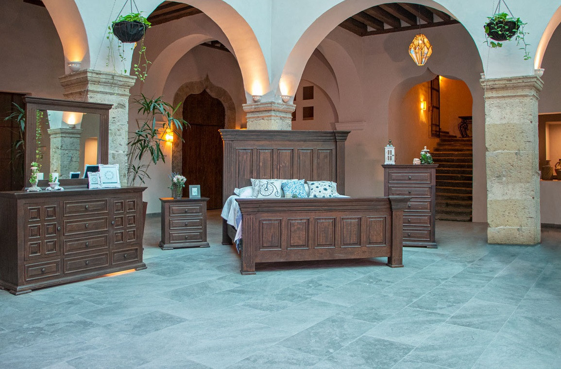 4. This oversized bedroom will surely make a statement in any home. Featuring custom cast pulls microfiber lined drawers top drawer on dresser ball bearing glides and English dovetailing on drawer fronts. This bedroom provides a true Old World look.