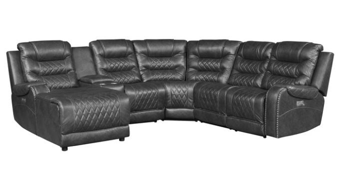 - Includes 6 pieces: Power LSF reclining chaise (LCPW) + Console (CN) + Armless chair (AC) + Corner seat (CR) + Power armless reclining chair (ARPW) + Power RSF reclining chair (RRPW)