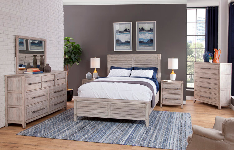 Includes: Complete Panel Bed (choose size), Dresser, Mirror, Chest, and (1) 2 Drawer Nightstand.