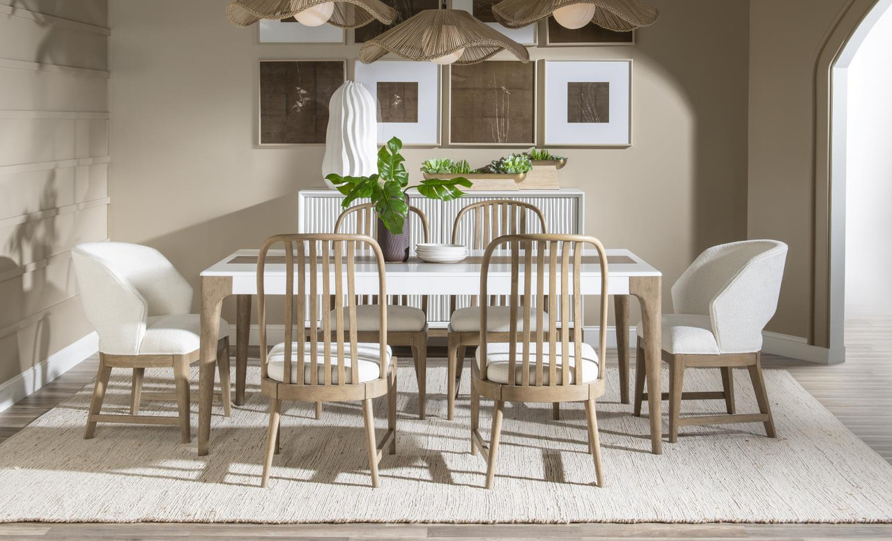 Includes: Leg Table, (2) Upholstered Back Chair, (4) Spindle Side Chair